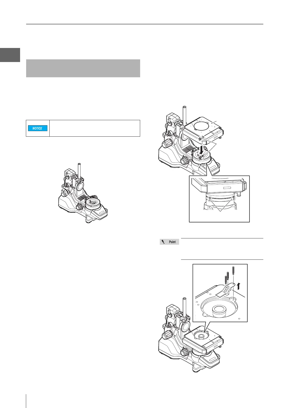 3 Place the XYθ stage on the XYθ stage mount.