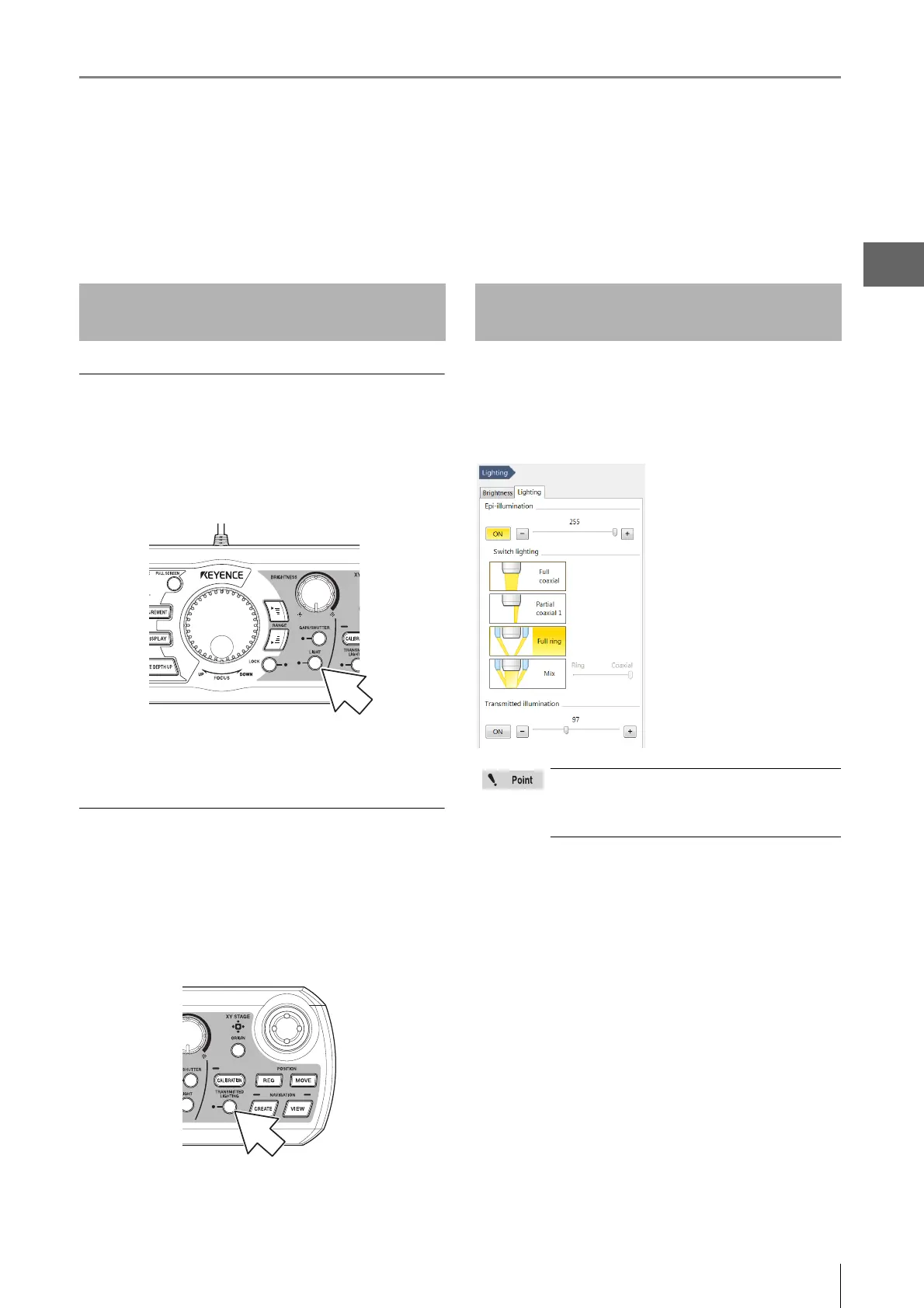 This section explains how to turn the lighting on and off and how to adjust the brightness. The brightness of the lighting can