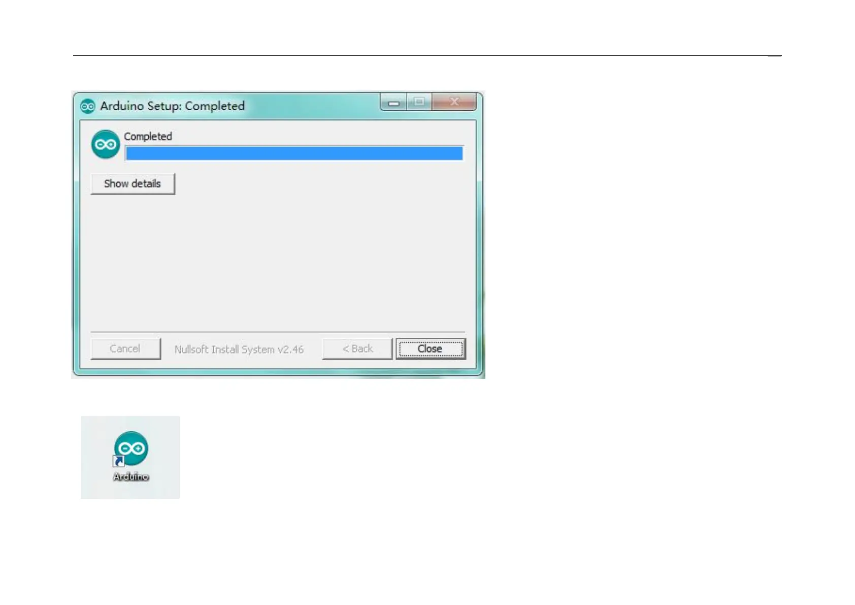 All right, up to now, you have completed the Arduino setup! The following icon will appear on your PC desktop.