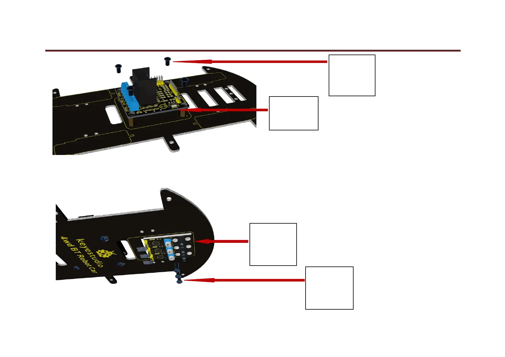 5. Fix the line tracking sensors with 3 nuts on the back.