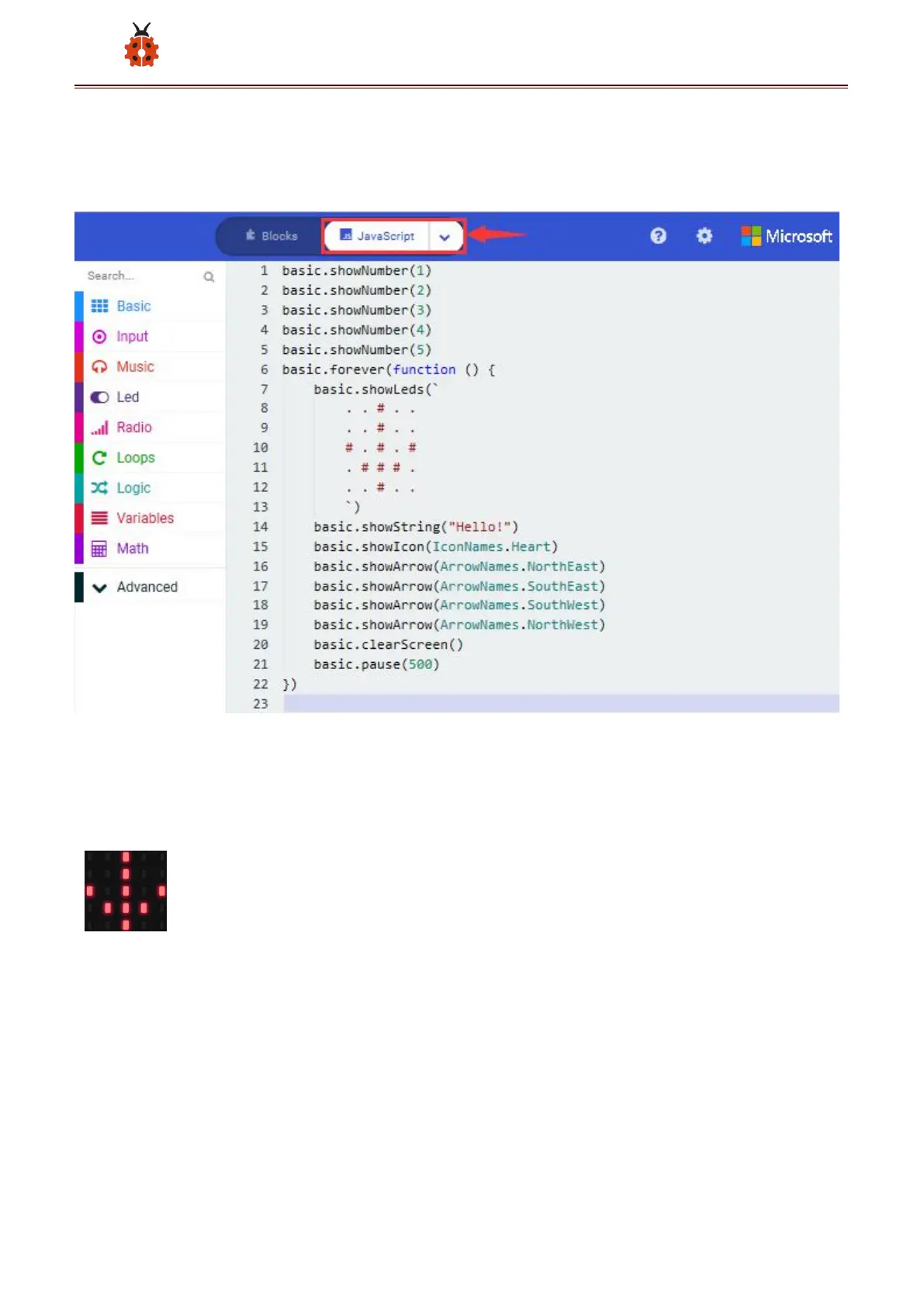 Upload code 1 and power the board , we will see the icon