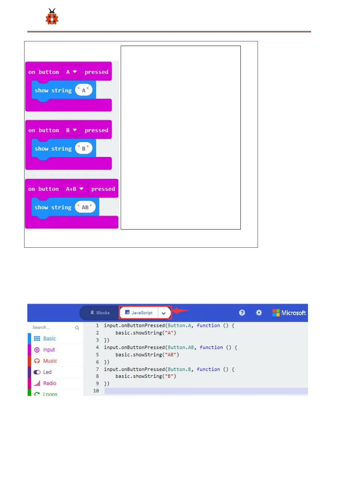 Select JavaScript" and“Python”to switch into JavaScript and Python