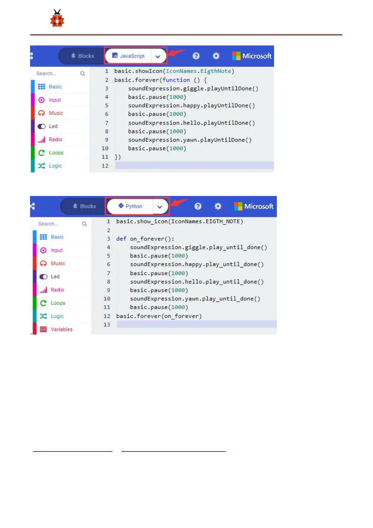 board via the USB cable, the speaker utters sound and the LED dot matrix