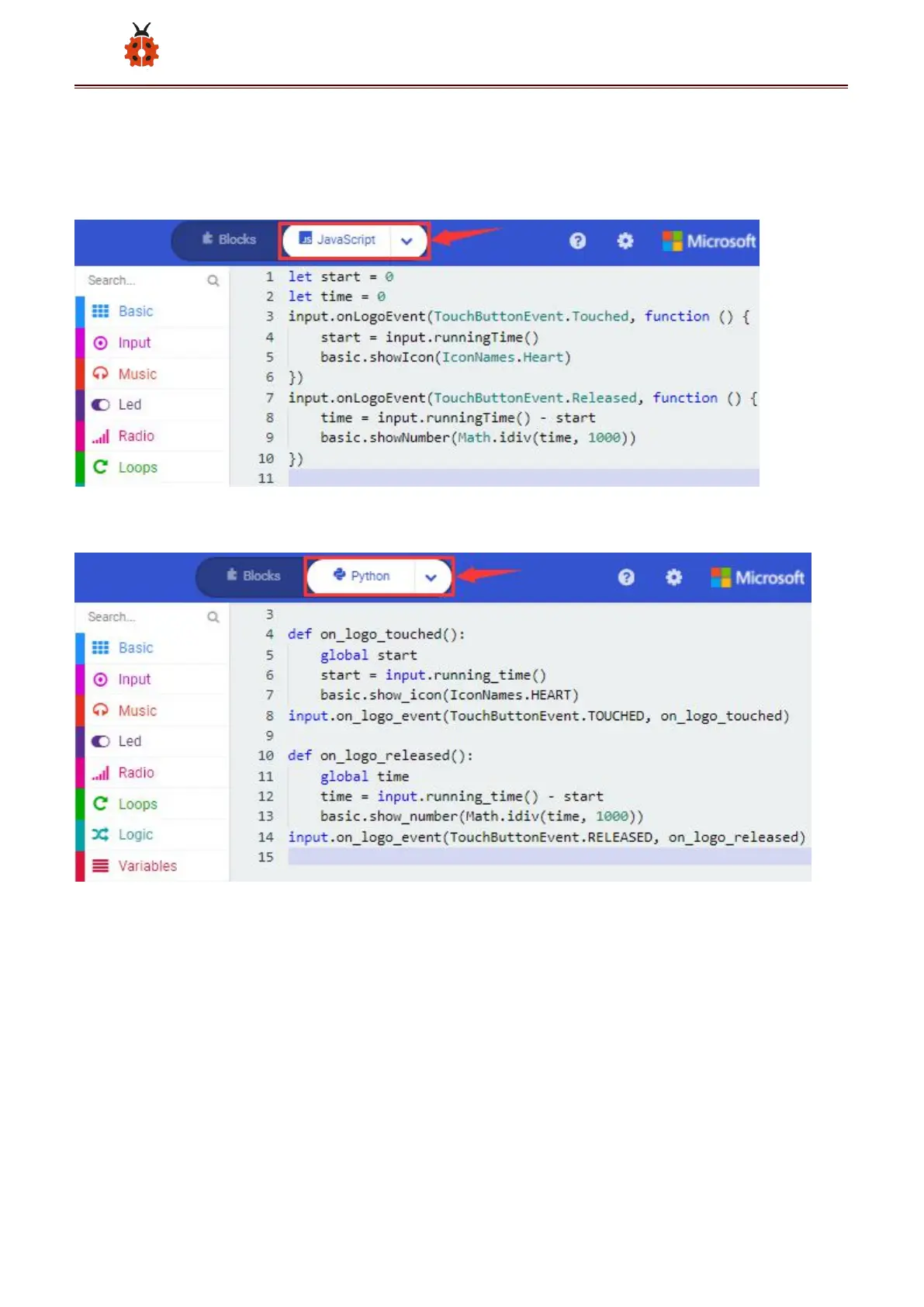 Select“JavaScript" and“Python”to switch into JavaScript and Python