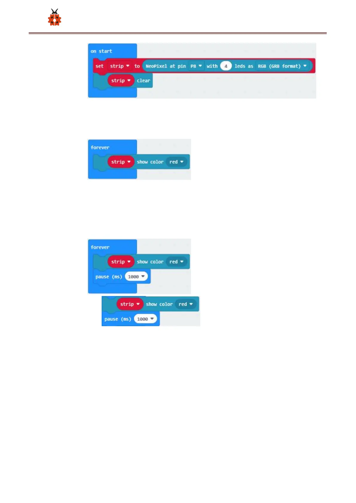 Enter“Neopixel”to move block“strip show color red”into“forever”block