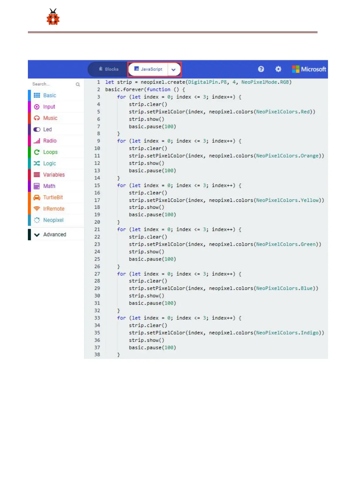 Click“JavaScript" to switch into the corresponding JavaScript code: