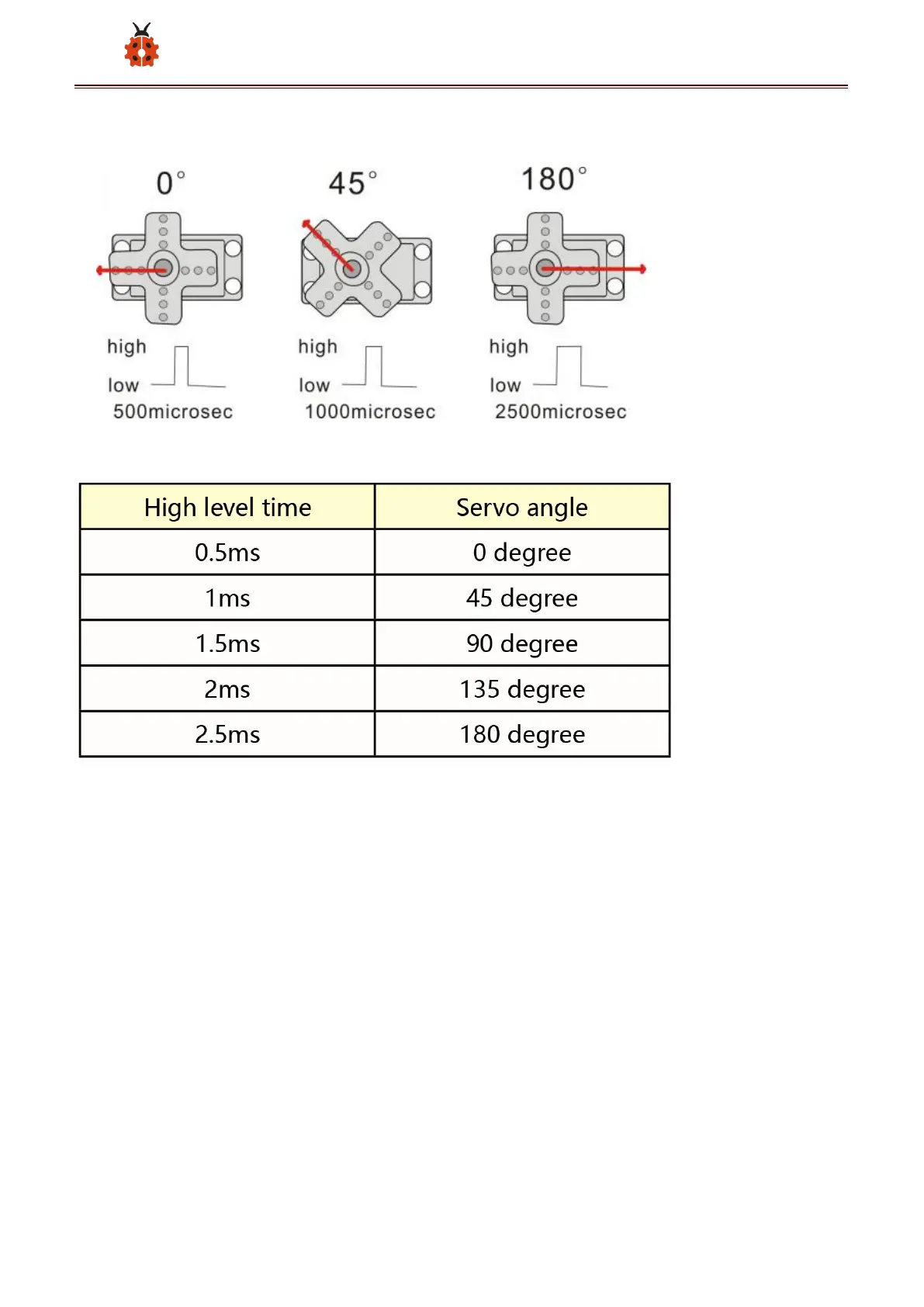 Operating angle range: about 180 ° (at 500 2500 μsec)
