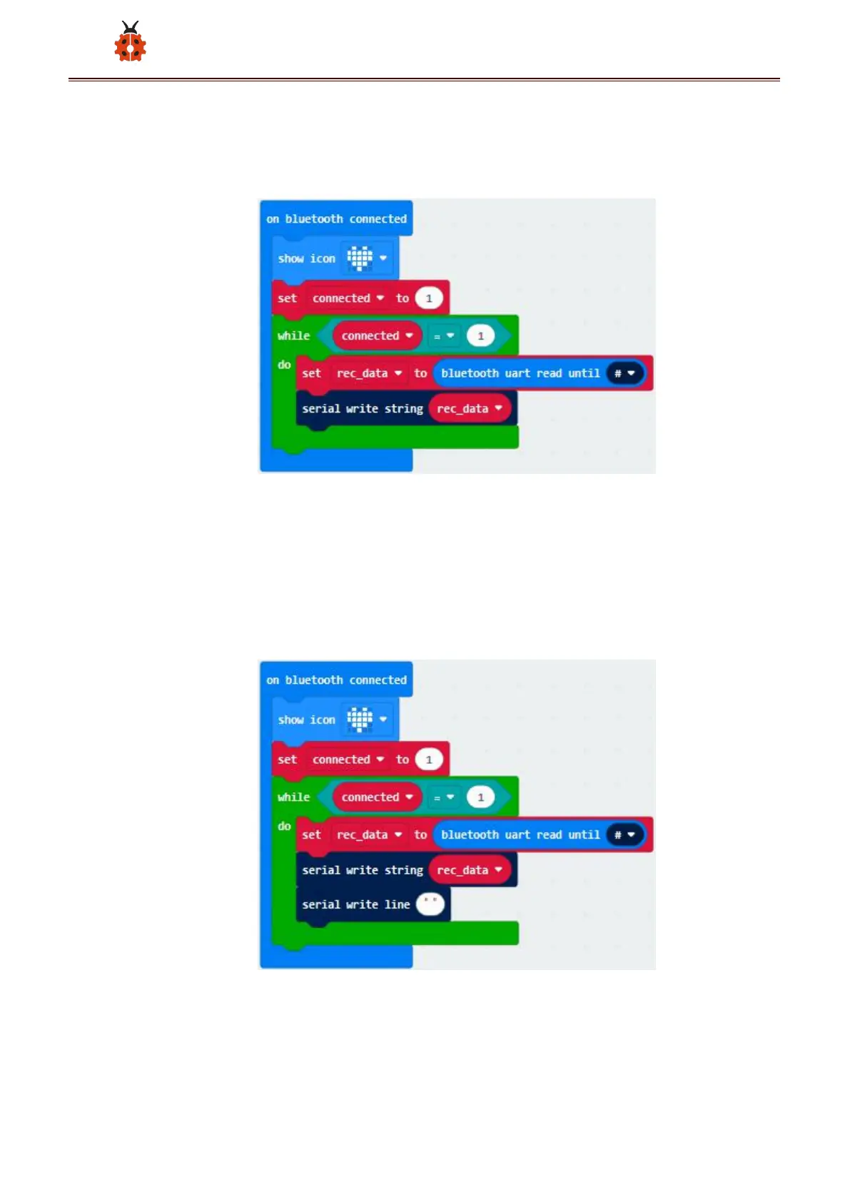 And combine variable“rec_data”with“serial write string”block.