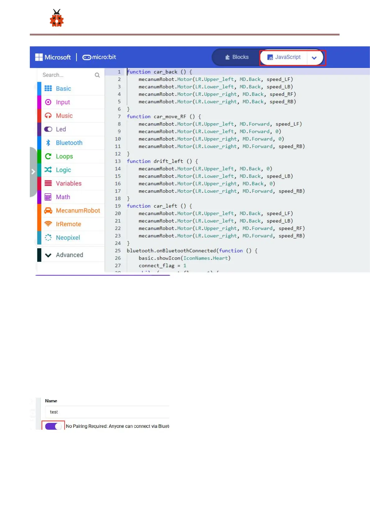 Enter Makecode online editor Projecting Settings