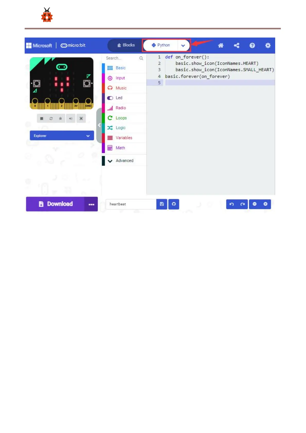 Click the ‘Download’ in the editor to download a "hex" file, which is a