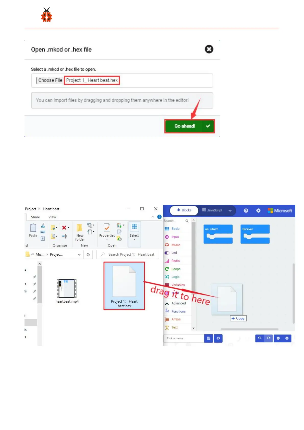 compiler above, you can also drag the the test code file provided into the