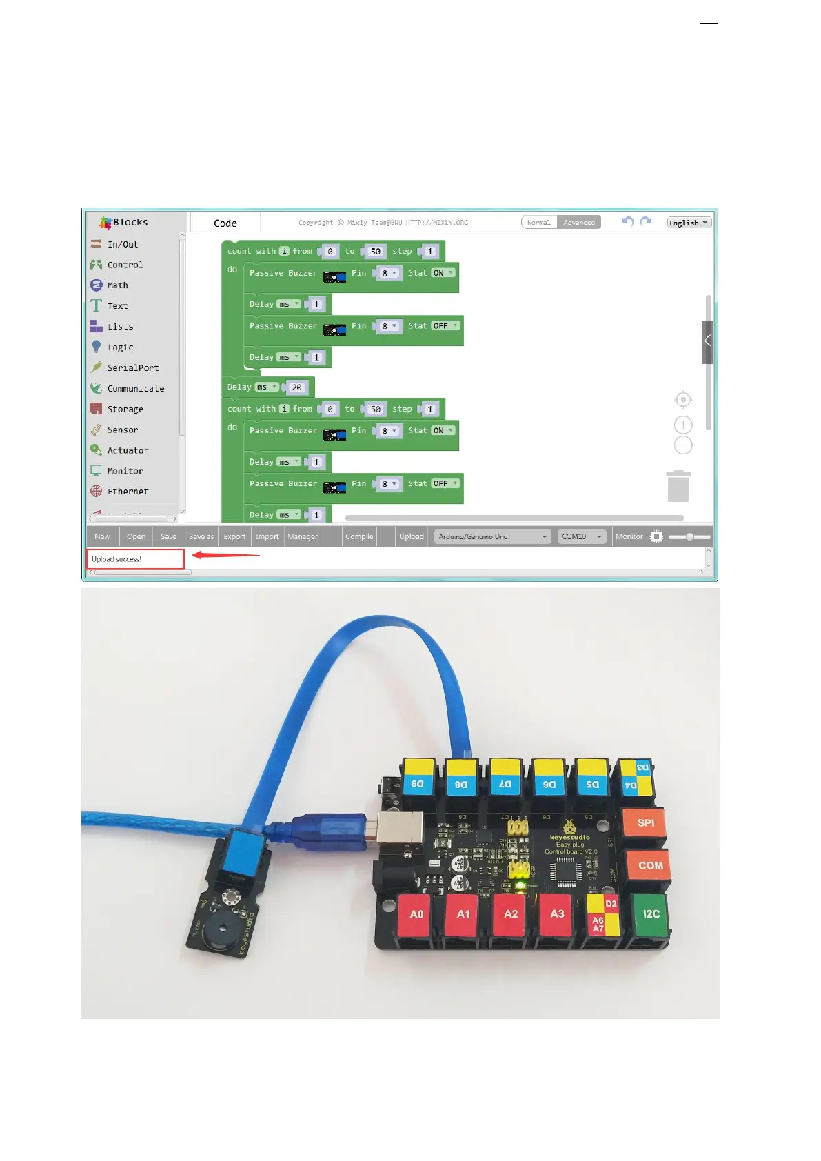 Done uploading the code, you should be able to hear the buzzer module