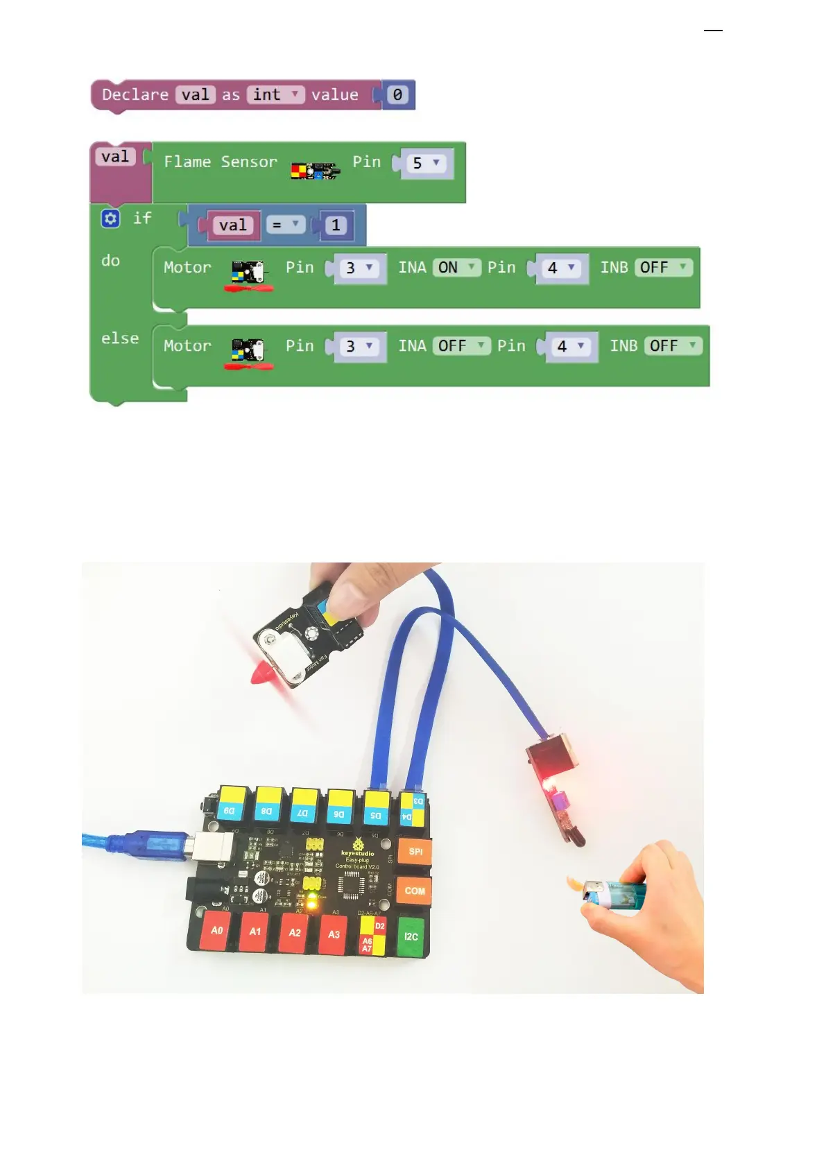 Done uploading the code, put a lighter close to the flame sensor. Once the