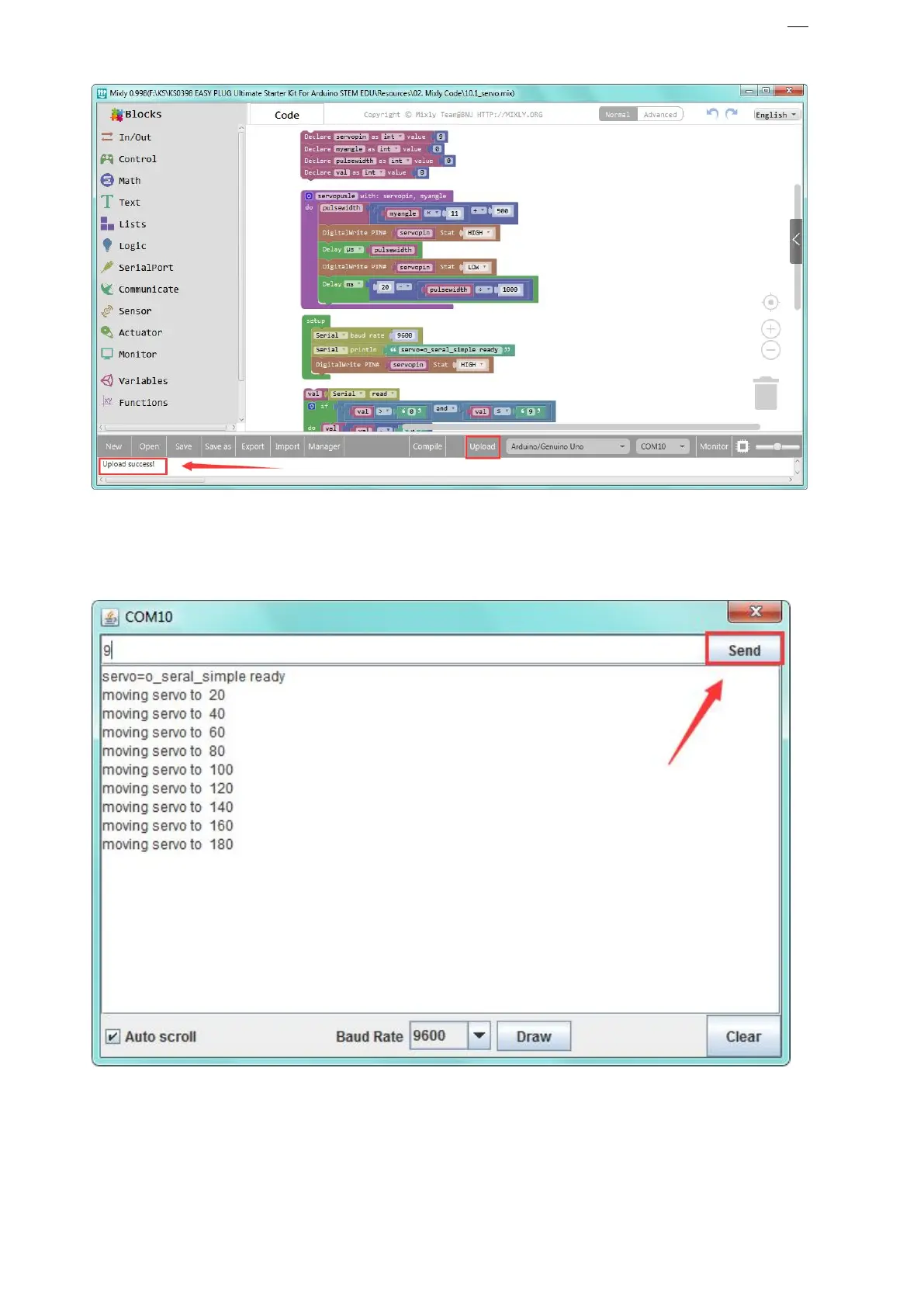 After uploading the code, open the serial monitor, enter the number 1 to 9,