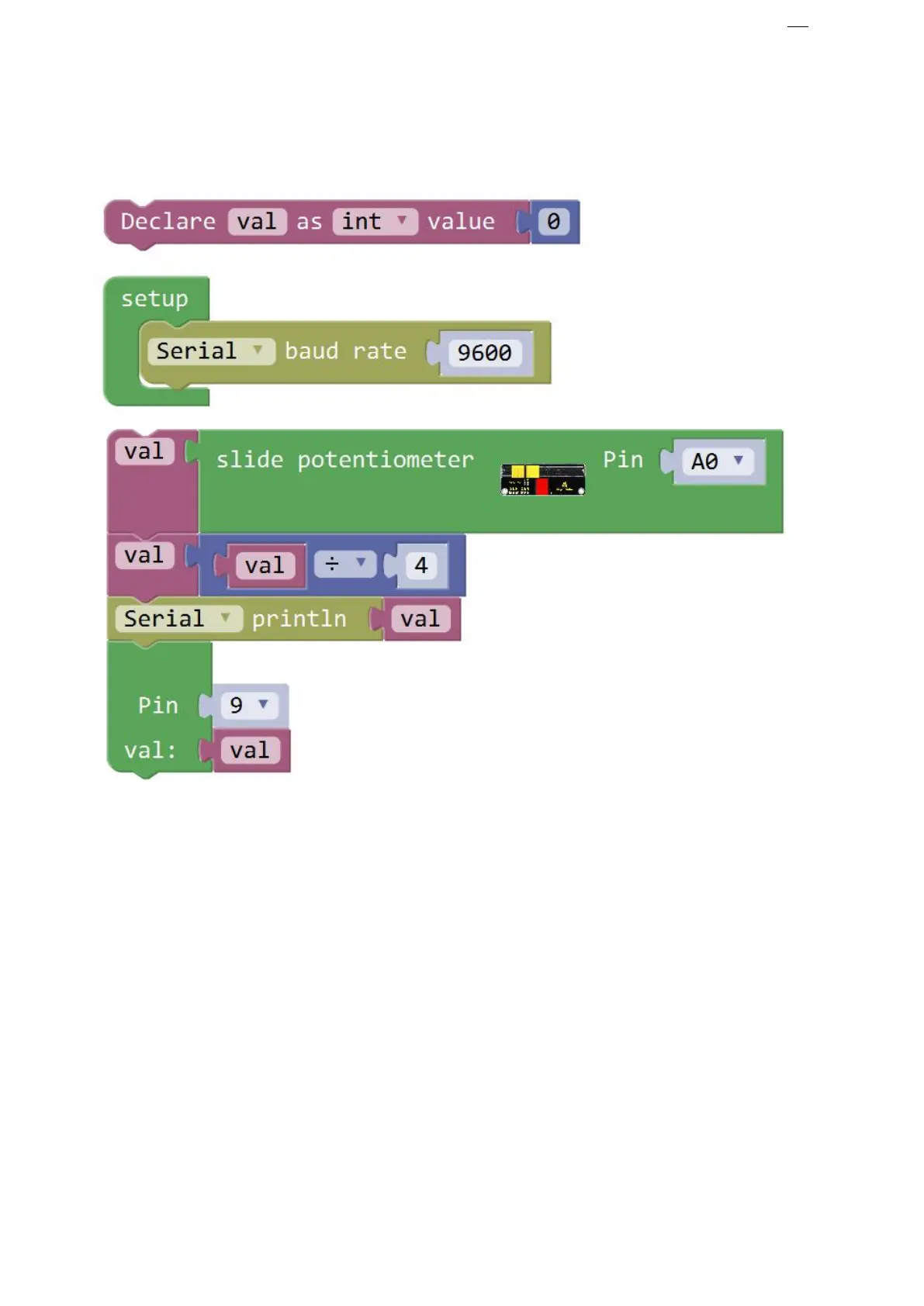 After uploading the code, slide the potentiometer, the brightness of LED will