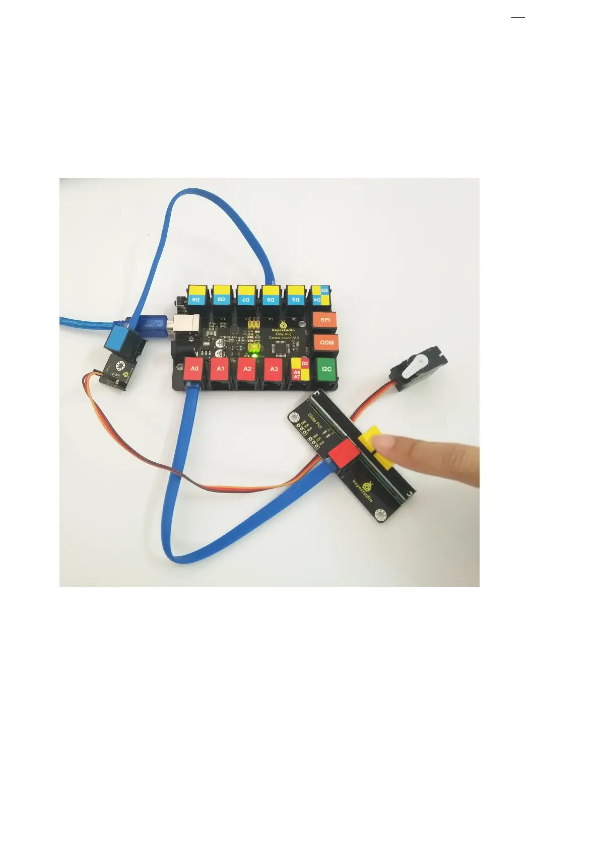 After uploading the code, slide the potentiometer, the servo motor will