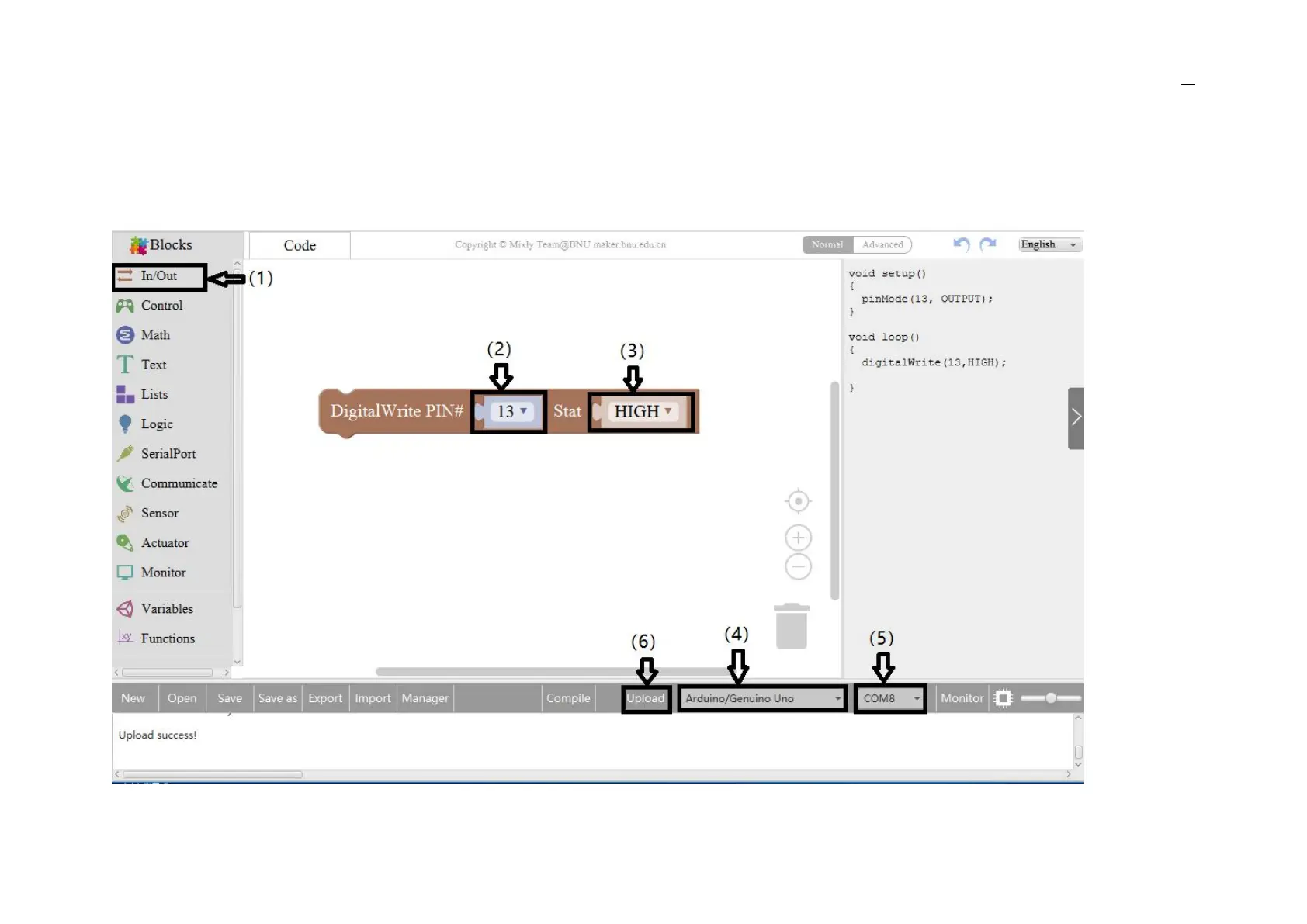 Connect your Arduino Uno board, then follow the steps below to light the Pin13 led on Arduino UNO.