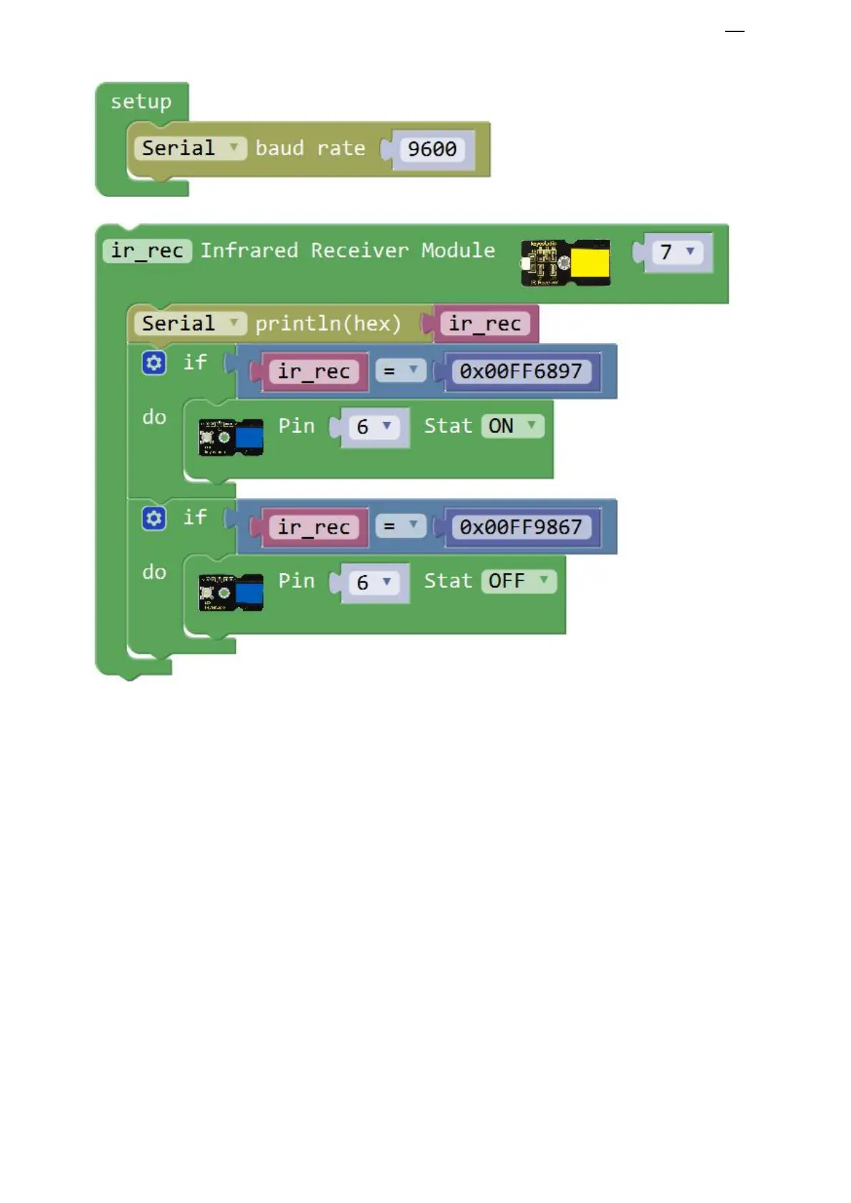 Upload success, press the key 1 on your remote controller, LED lights up.