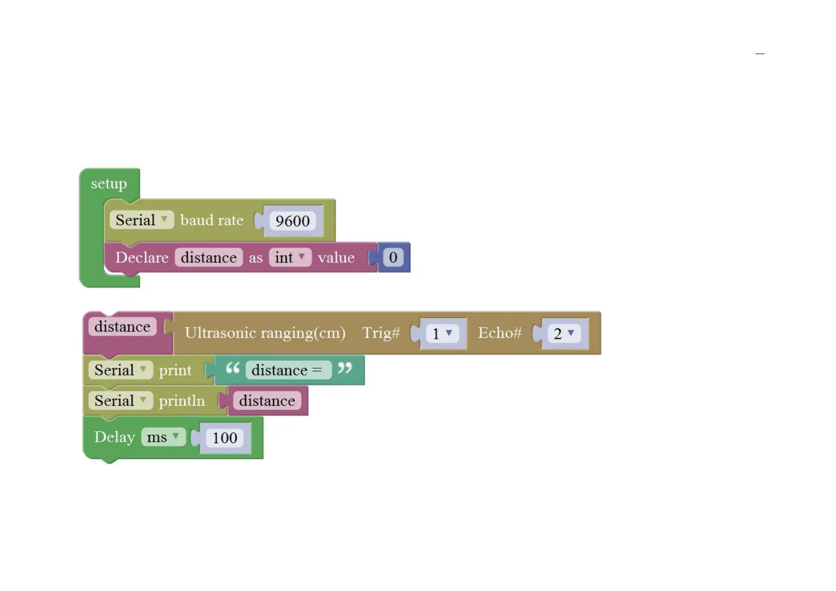 open the monitor, you should see the distance value, updating once per 100ms.