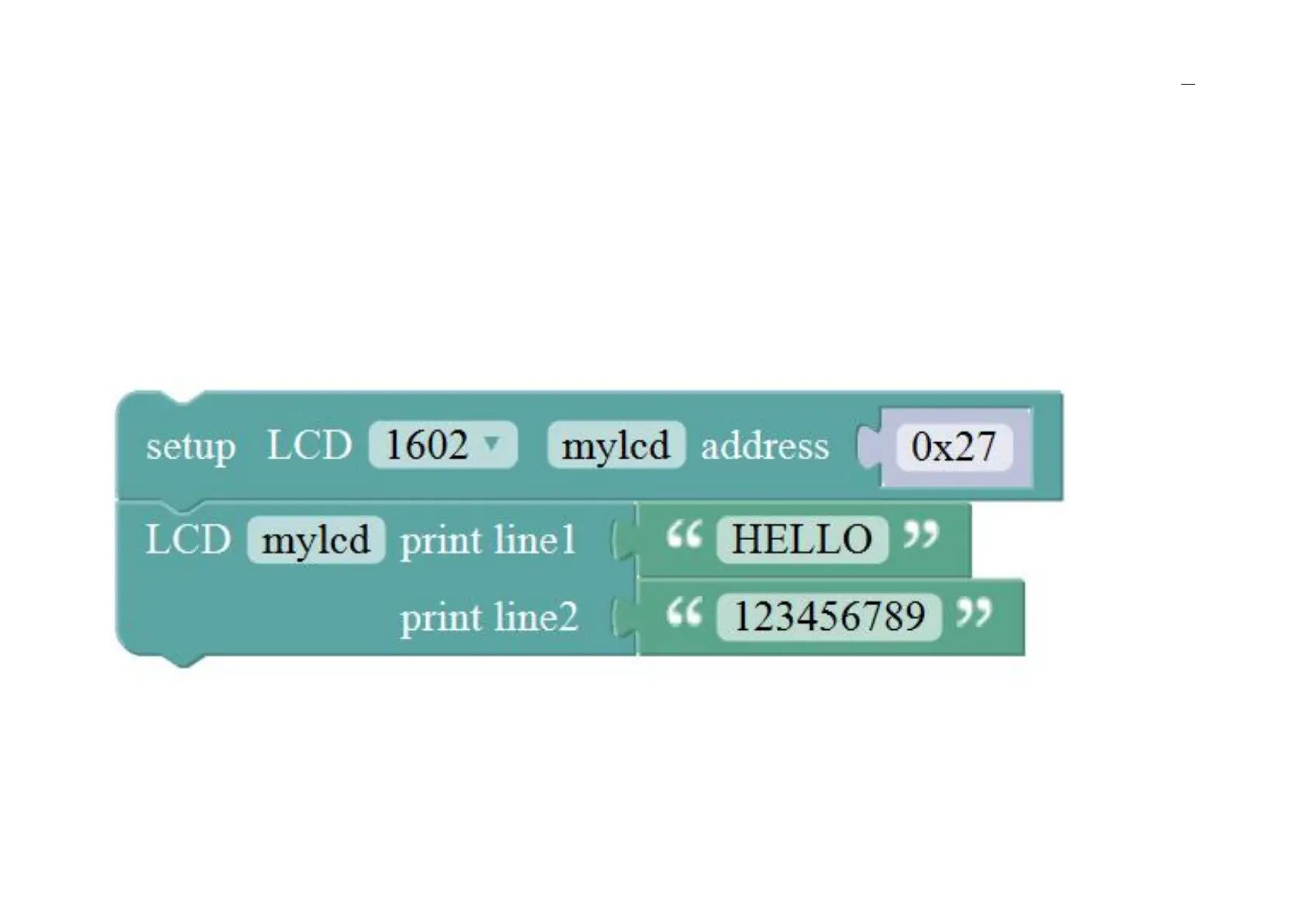 Then upload the code, LCD screen has two lines, you should see the line 1 print HELLO, and line 2 print