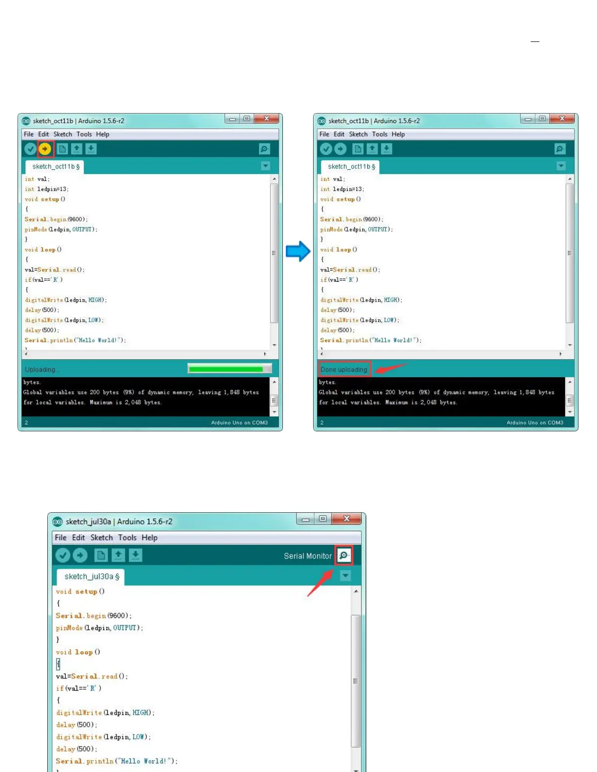 After that, click the “Upload” button to upload the code. If the upload is successful,