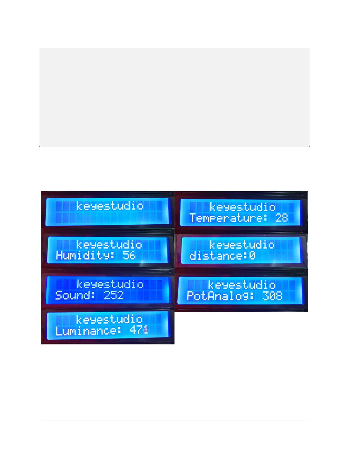 After connecting the wiring and uploading code, we can see the corresponding contents on LCD by pressing buttons.
