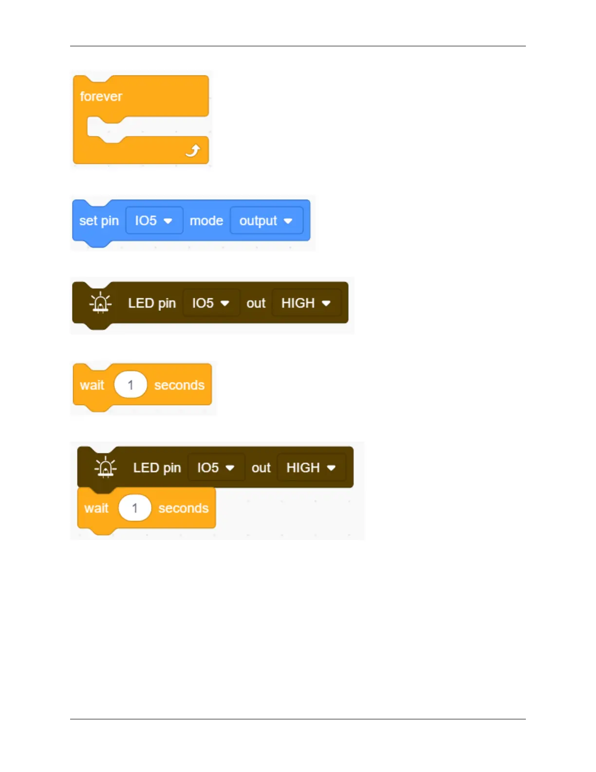 6. Drag the following blocks and set the IO5 pin to LOW.