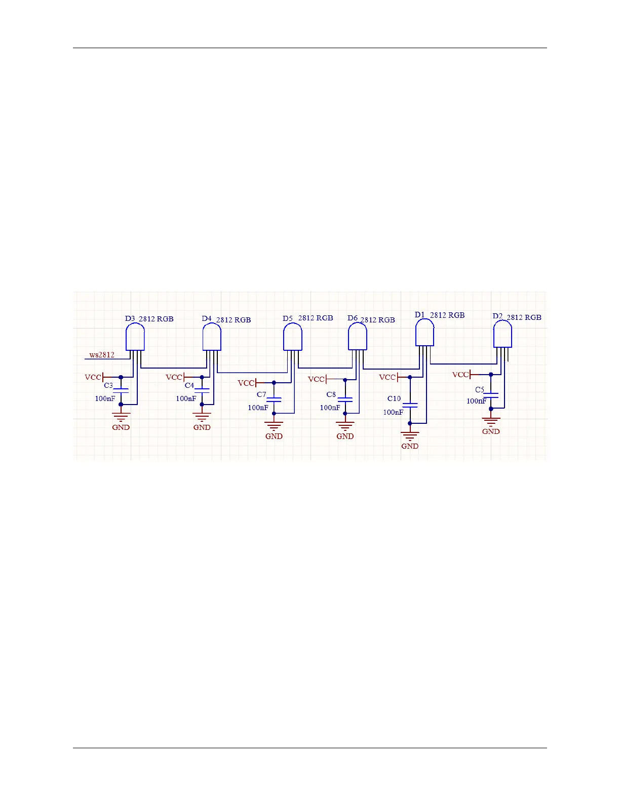 DIN terminal receives data from the controller. The firstly arriving 24bit data will be extracted by the first pixel and be