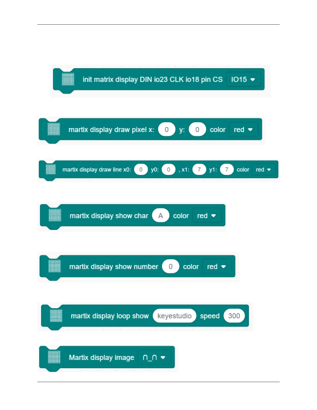 2. Draw pixels. This code block will light up or turn off pixels on the dot matrix by axis x and y, with red for on