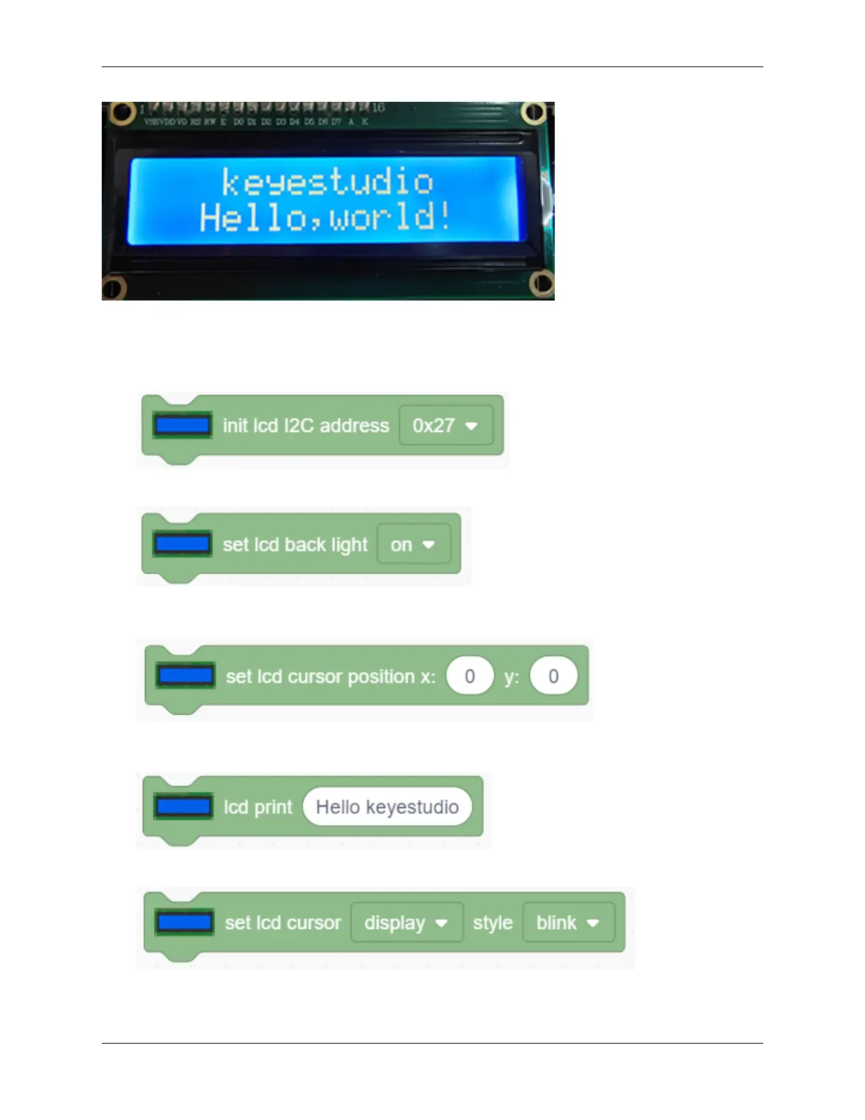 4. Print characters on LCD. The blank can be filled with characters or variables, which is convenient for displaying