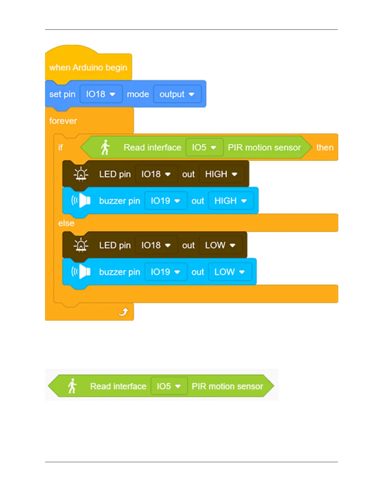 When PIR senses human motions, it outputs a high level. Therefore, we can judge whether there is a movement by