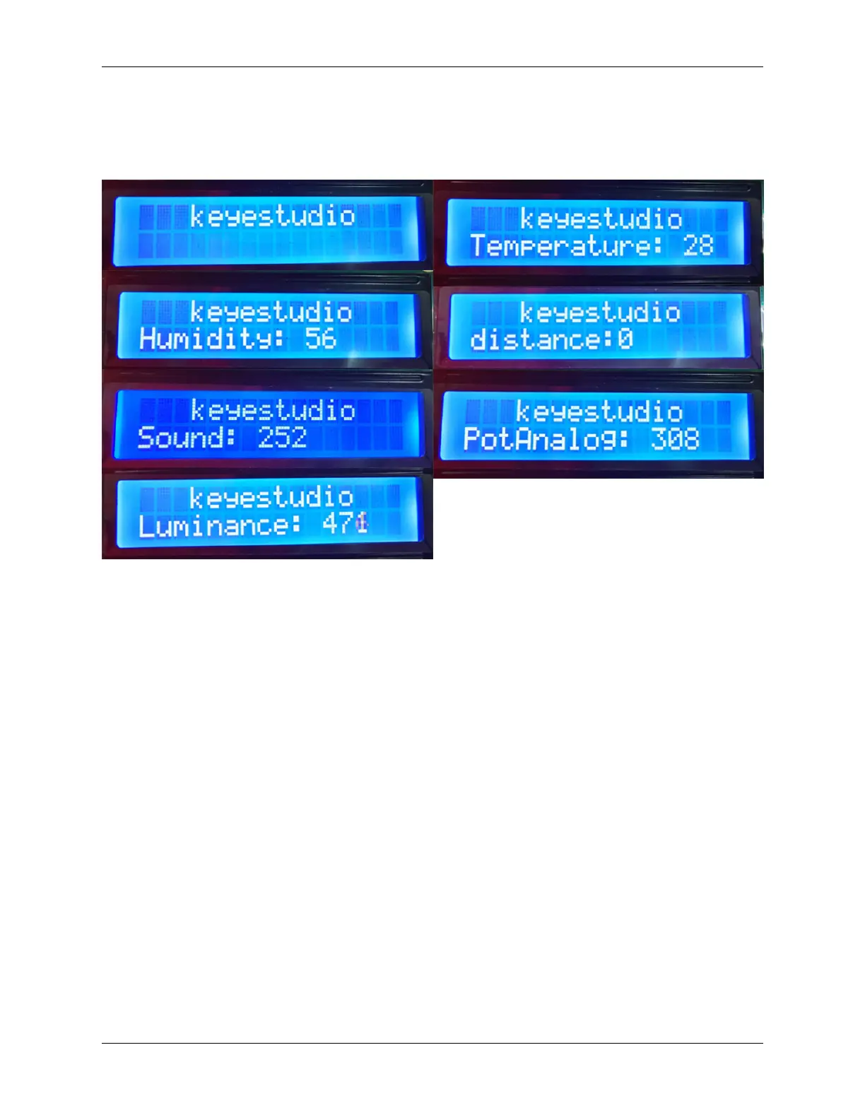After connecting the wiring and uploading code, we can see the corresponding contents on LCD by pressing buttons.
