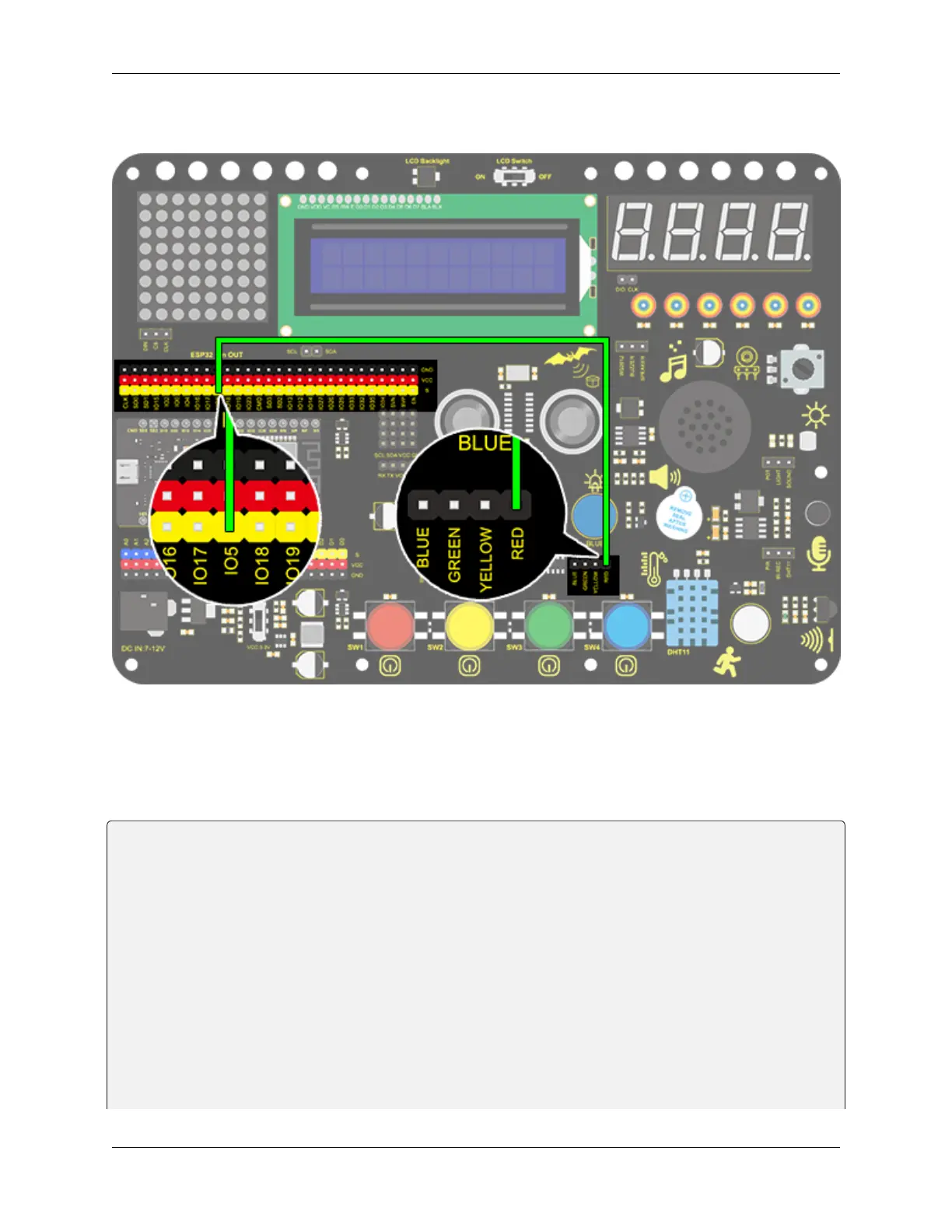 value)). By the way, a delay time may reinforce the control of LED shining time. Next, we use another “for” statement