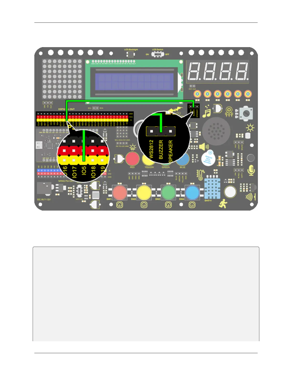 int buzzer = 5; //Define buzzer connected to IO5 pin