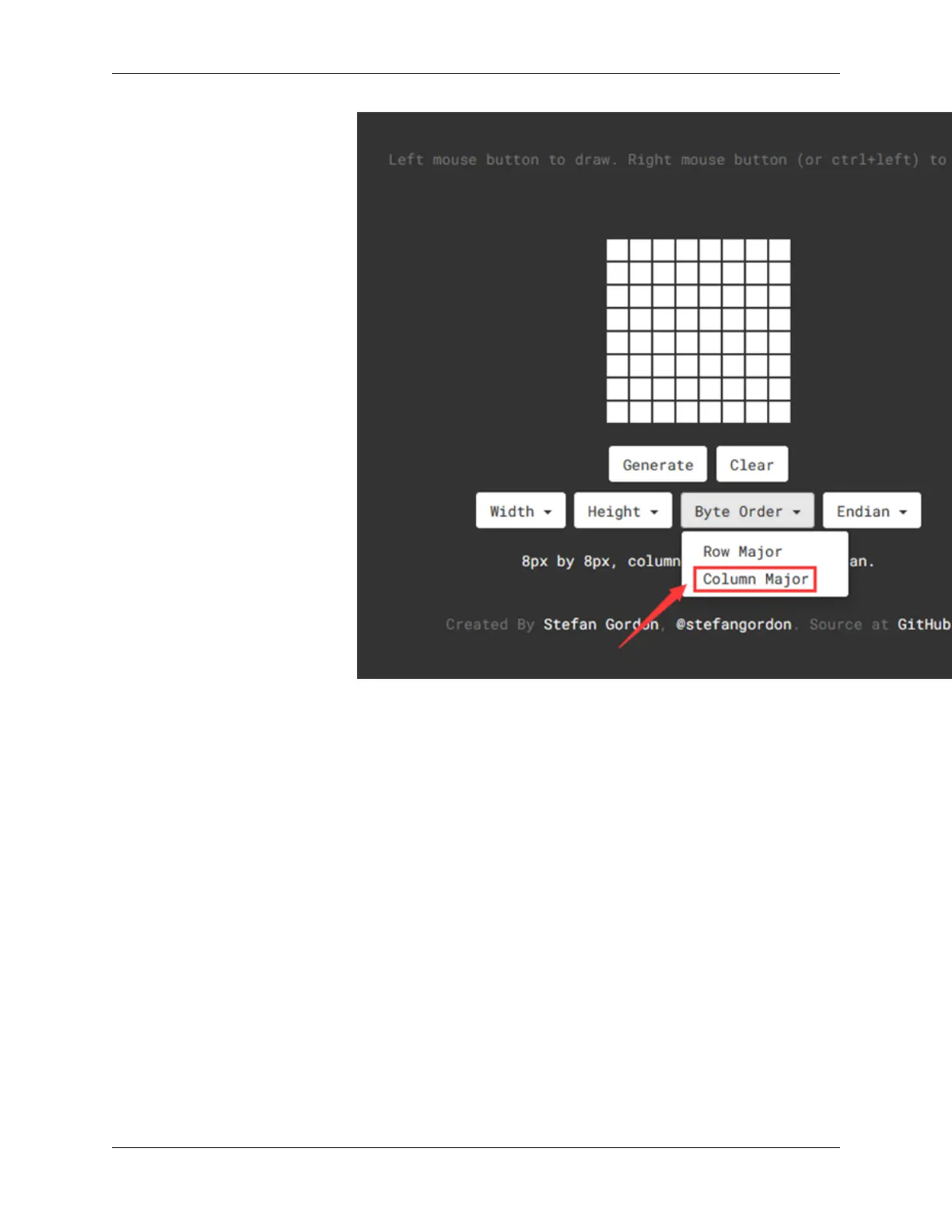 2.Set “Byte Order” to “Column Major”.