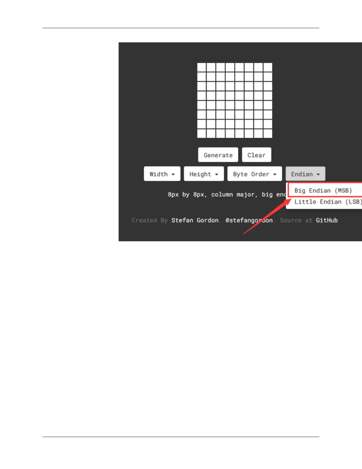 erate an array for this icon. Copy this array and paste it in code, and then the pattern will be displayed on the dot