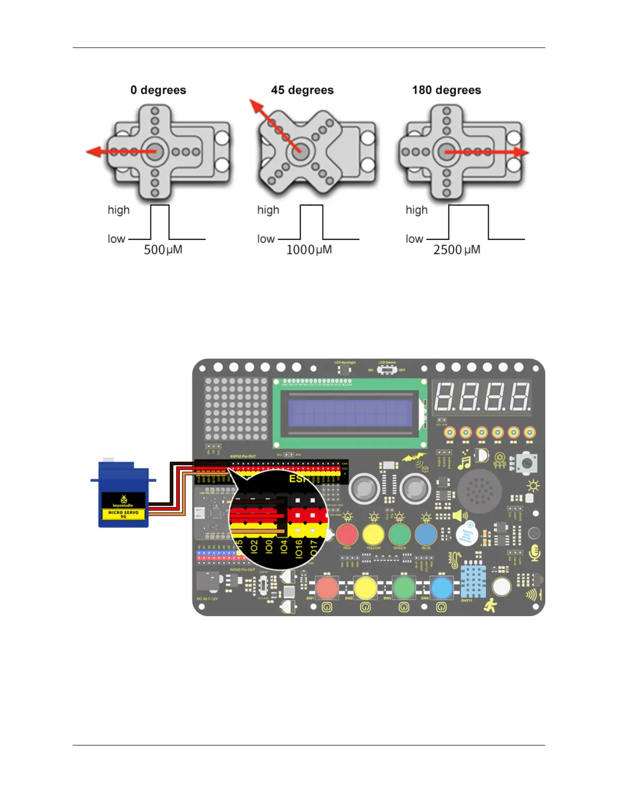 which corresponds to 0°180°. Pay attention that, for the same signal, the rotation angle may vary from servo brands.