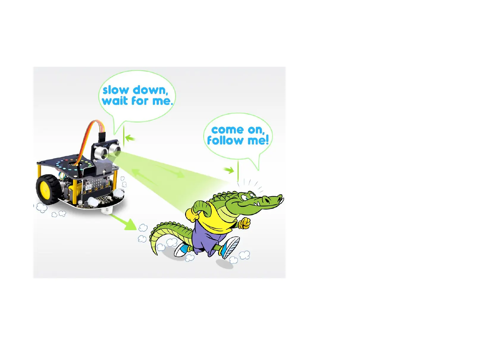 The micro:bit robot will follow along the front