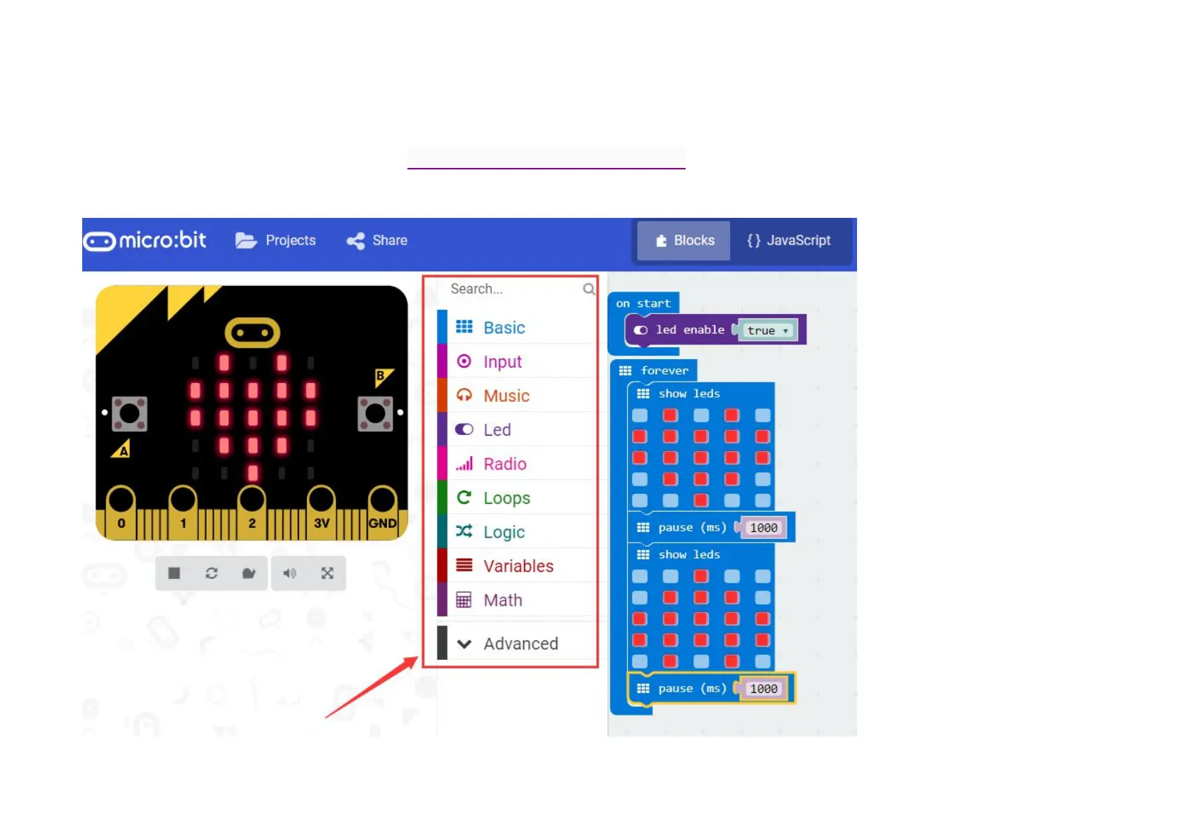Use micro:bit MakeCode Block editor https://makecode.micro:bit.org/ to write your first micro:bit code.