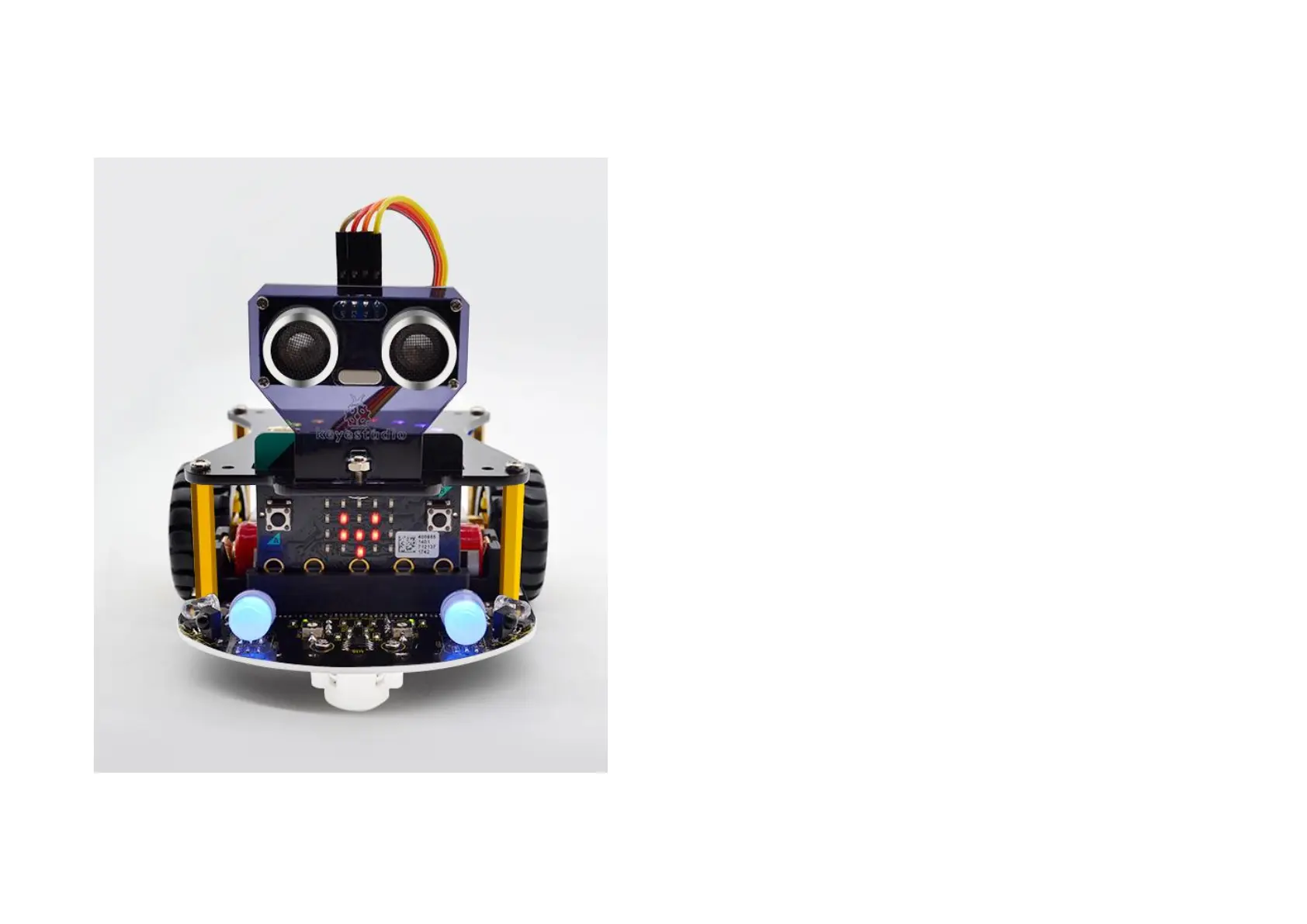micro:bit main board into the robot shield; connect a 18650