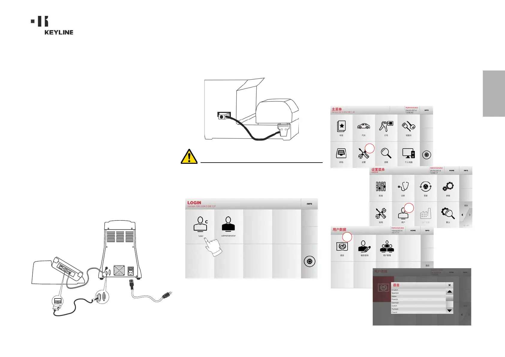 Keyline 994 LSER - 启动; 设备使用注意事项; 设备初始设置控制; 控制器的启动