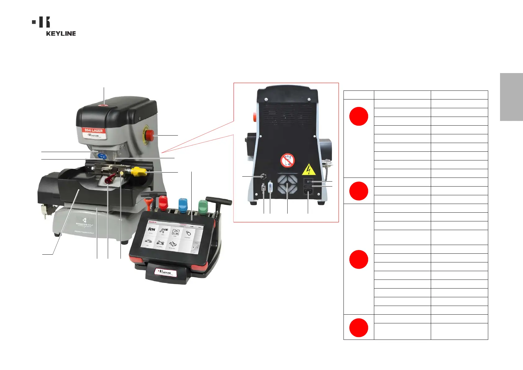 Copyright by Keyline - Italy 994 LASER Man. cod. B409619FG Keyline S.p.A. 5