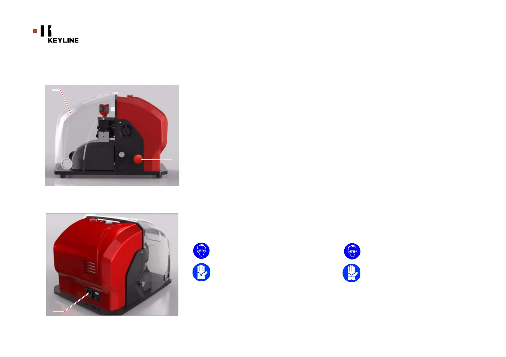 The key cutting machine bears the following safety signs.