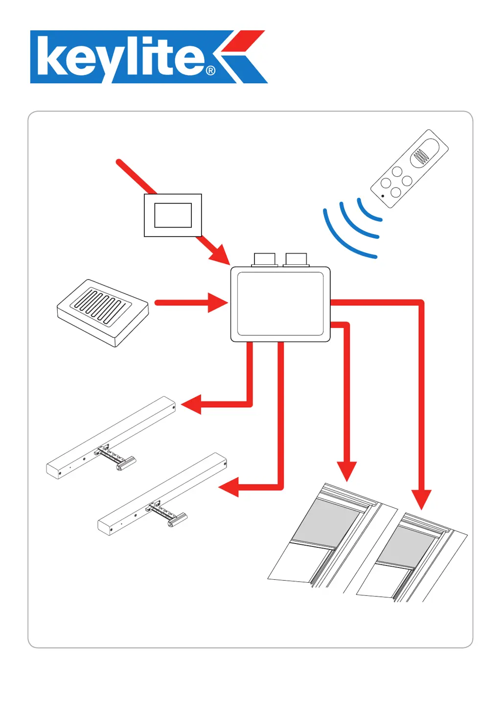 If the receive LED on your Keylite Control Panel doesn't light up when you press a button on the remote control, here are a few things to check: * Make sure the control panel is getting 24V DC. * Ensure the remote control is properly programmed to the control panel. * Inspect the aerial connection for any signs of damage. * Try reversing the wires on the W+ and W- connections. * Also, try reversing the wires on the B+ and B- connections.
