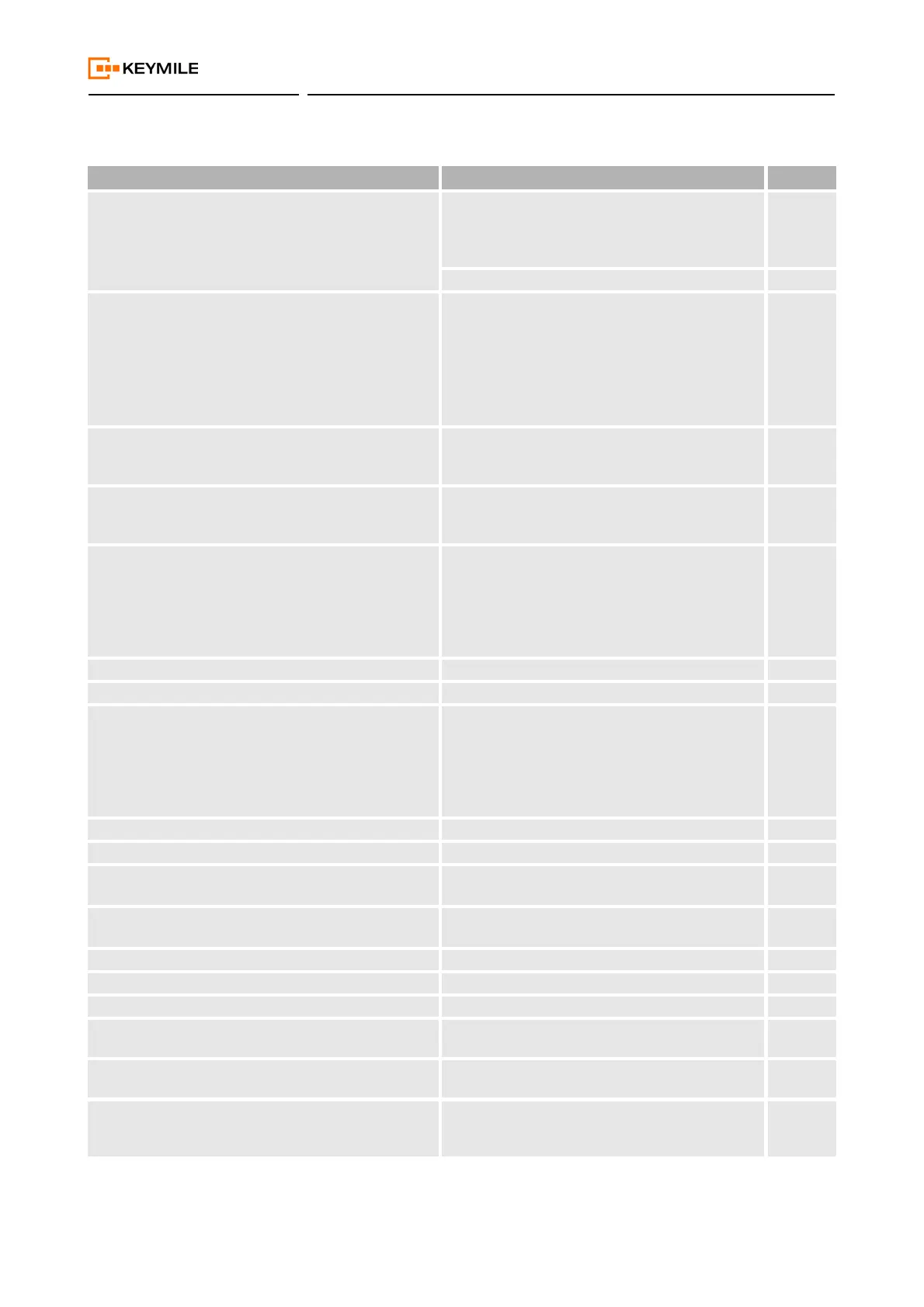 Table 3: Main functions and specifications