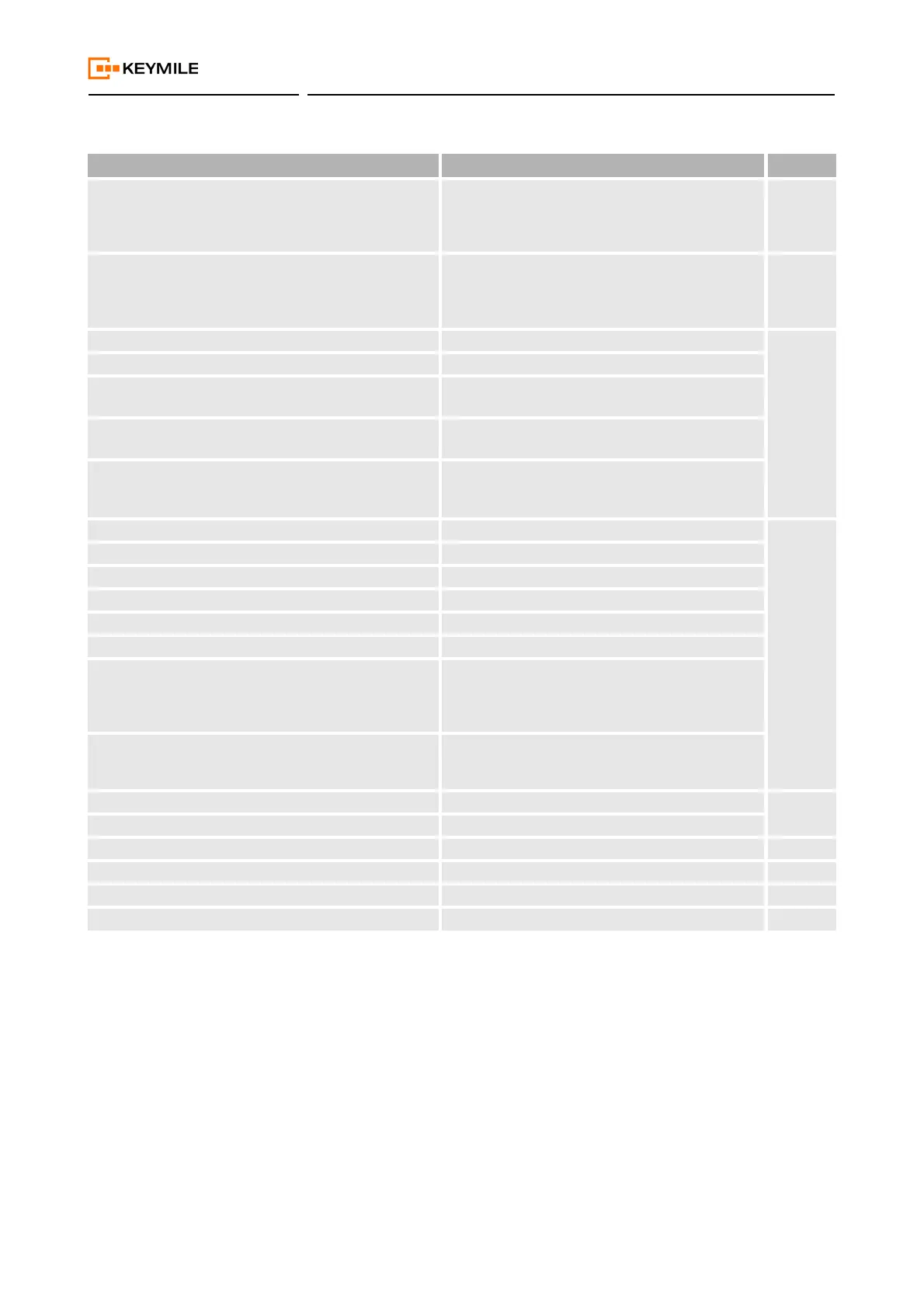 Table 3: Main functions and specifications (continued)