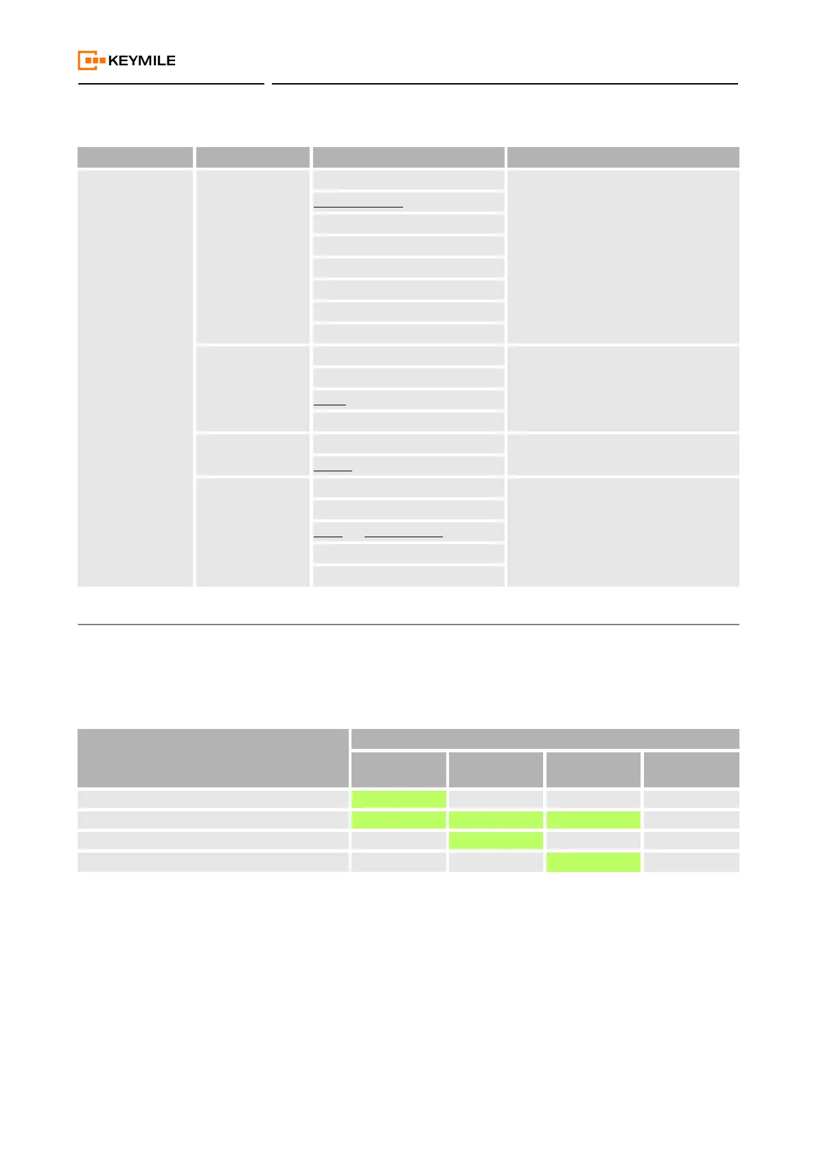 ferent modes of operation. Green shaded entries can be modified, grey