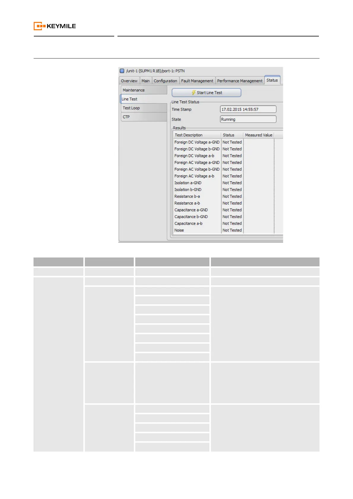 The line-test results comprise the Test