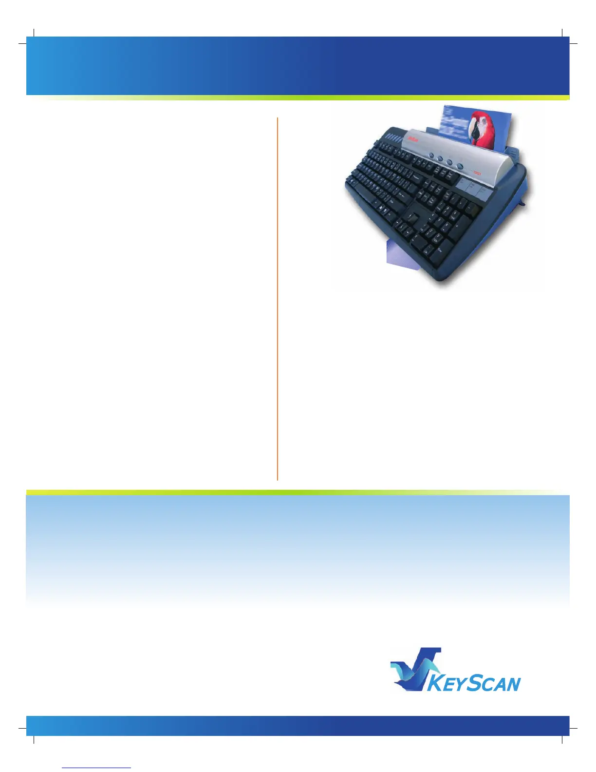 The KeyScan hidden power of integrated zero foot-print color scanner in the keyboard turns the PC with its fax-
