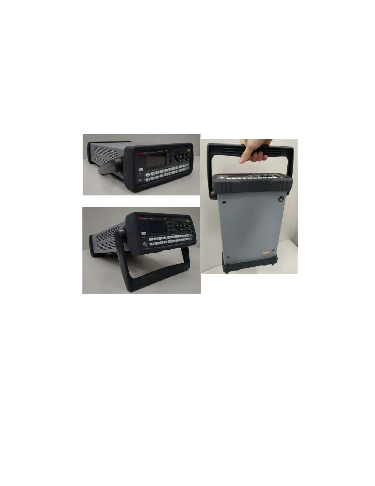 – (Bottom) Handle tilted to raise the front of the instrument for easier viewing of the front panel.
